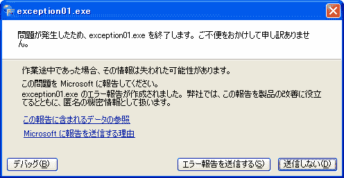 自分の作ったプログラムの欠陥がいちいちマイクロソフトに報告されるのか!? と、思ってしまいますね。